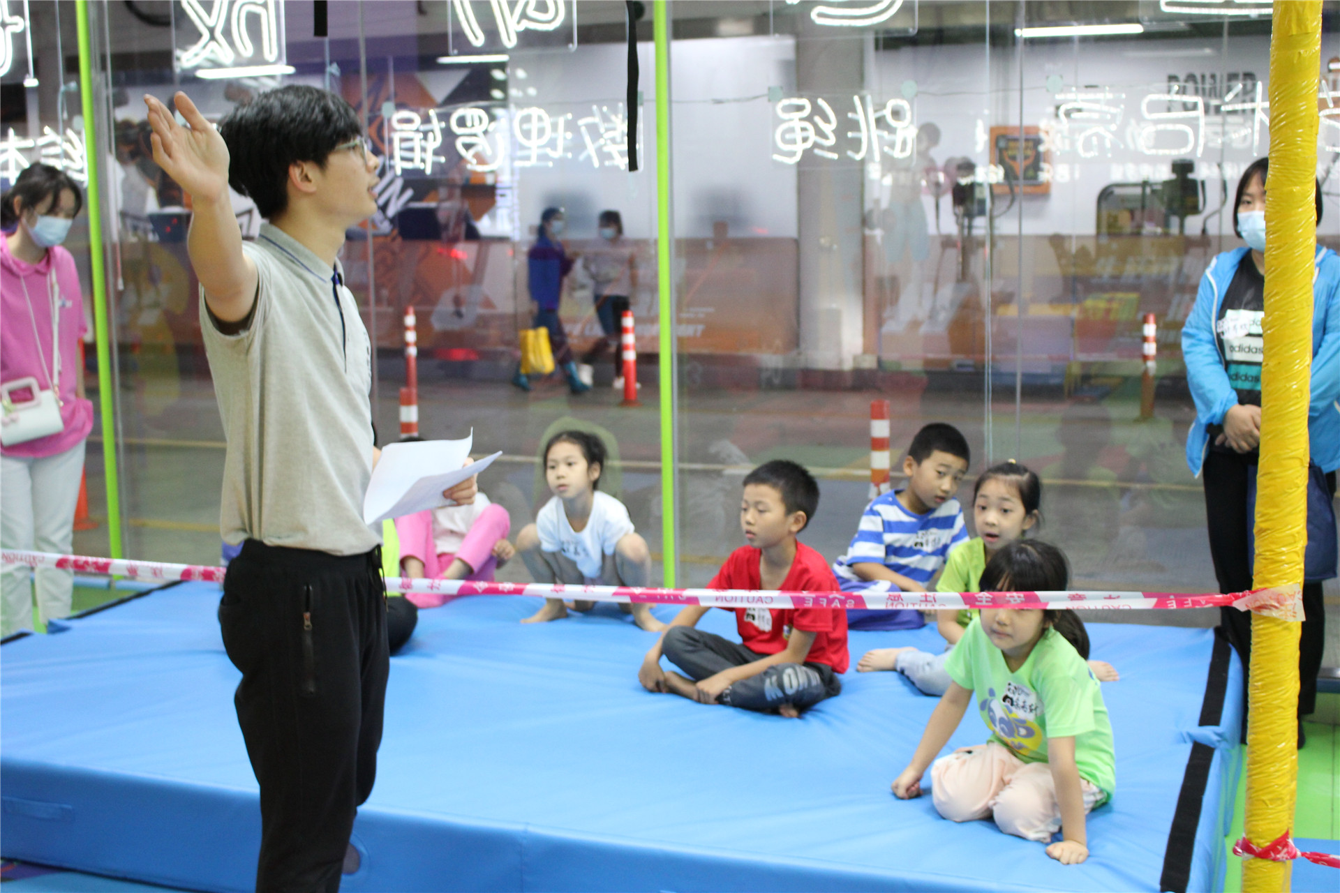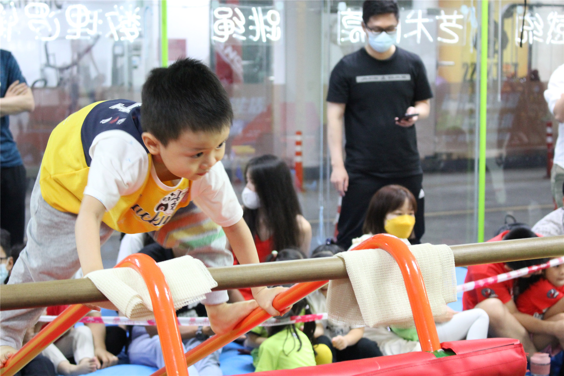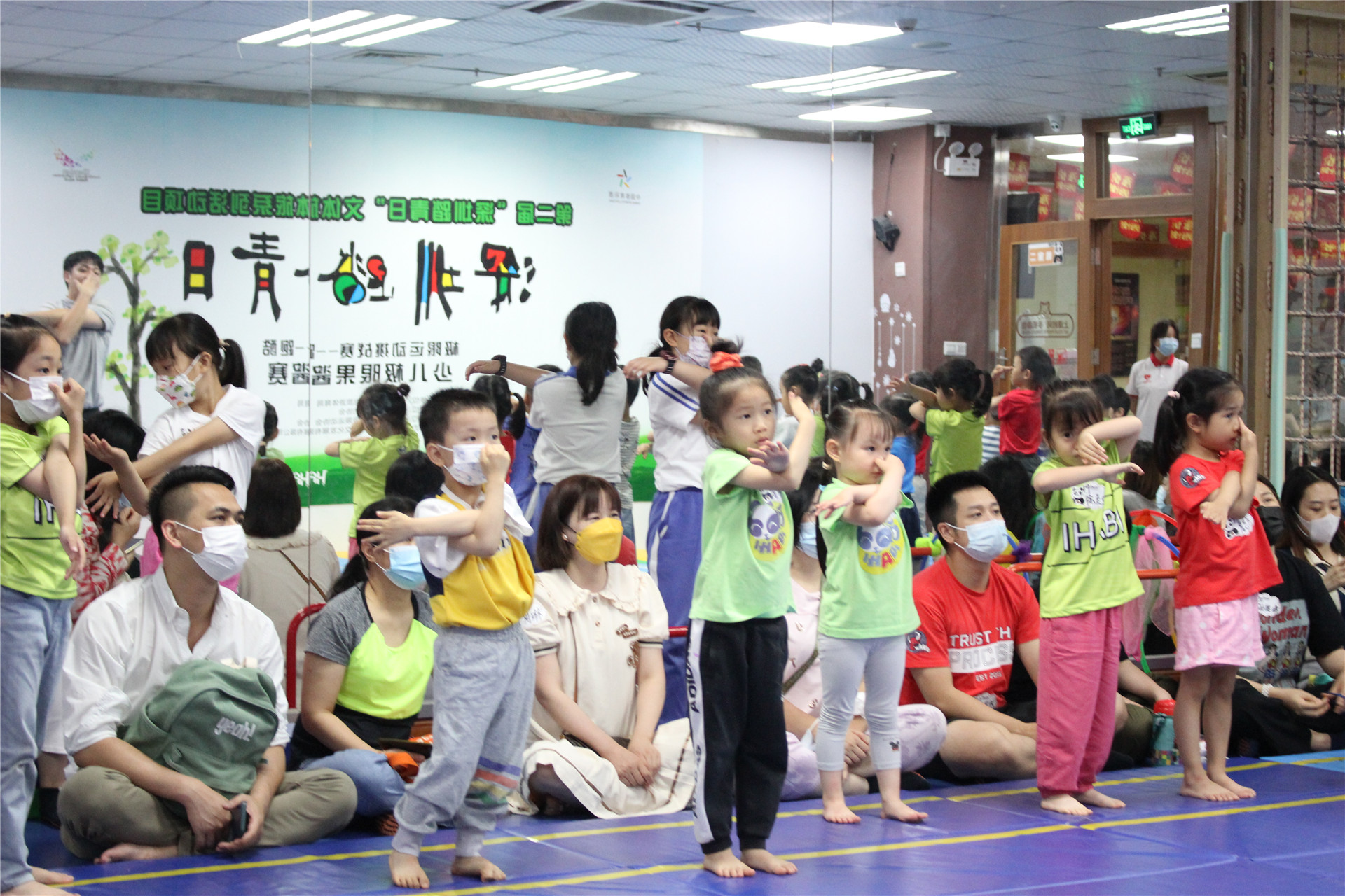 等待比赛开始的小选手与家长们