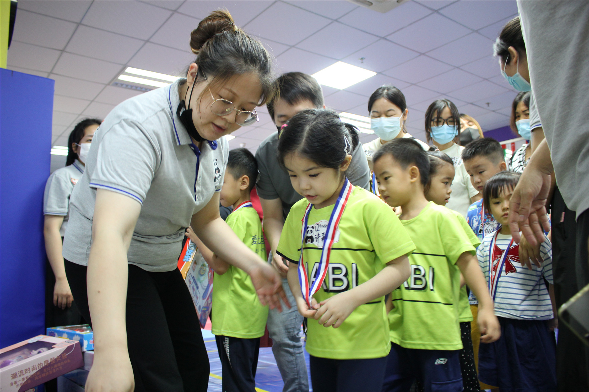 赛事结束!参赛小选手排队领取活动奖品