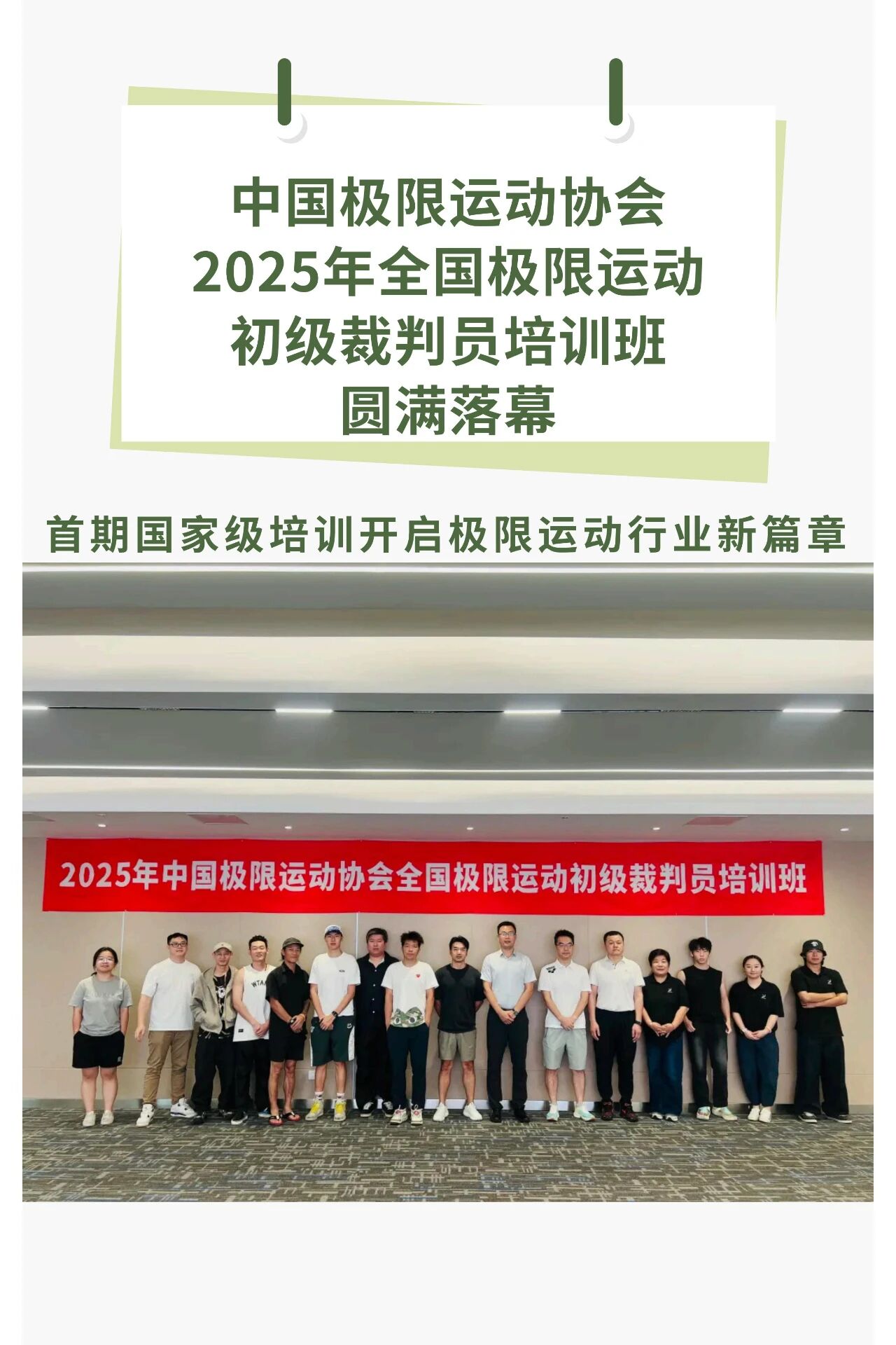 结业仪式上,学员们手持证书合影留念,眼神中满是对未来的期待。本次培训不仅填补了国内极限运动裁判体系化培训的空白,更打造了一支兼具专业能力与职业信仰的裁判新生力量。