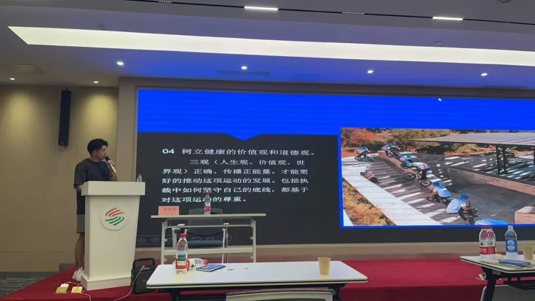 芮戈冽作为小轮车项目的权威讲师,凭借丰富的赛事执裁经验,将复杂的规则拆解为生动案例。从选手动作的难度系数到赛道的风险预判,他通过视频回放、现场模拟打分等方式,让学员沉浸式掌握执裁要点。他幽默的授课风格和严谨的专业态度,让课堂氛围既轻松又高效,学员们直呼“干货满满”!