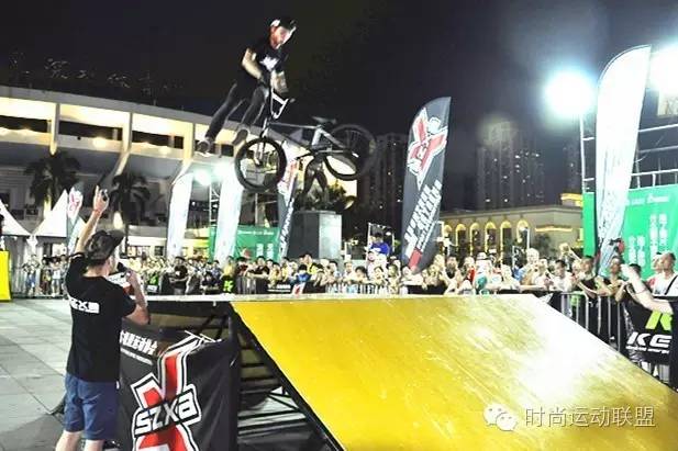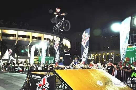 街头篮球、时尚运动在主持人激情演说下,干柴烈火,观众们为之疯狂。三人篮球赛进行的如火如荼的同时,高耸的深极协旗帜、美观的极限道具、极限高手、美女、潮人们占据了深圳体育场的东北角,约300平米的地域就是时尚运动表演的区域。