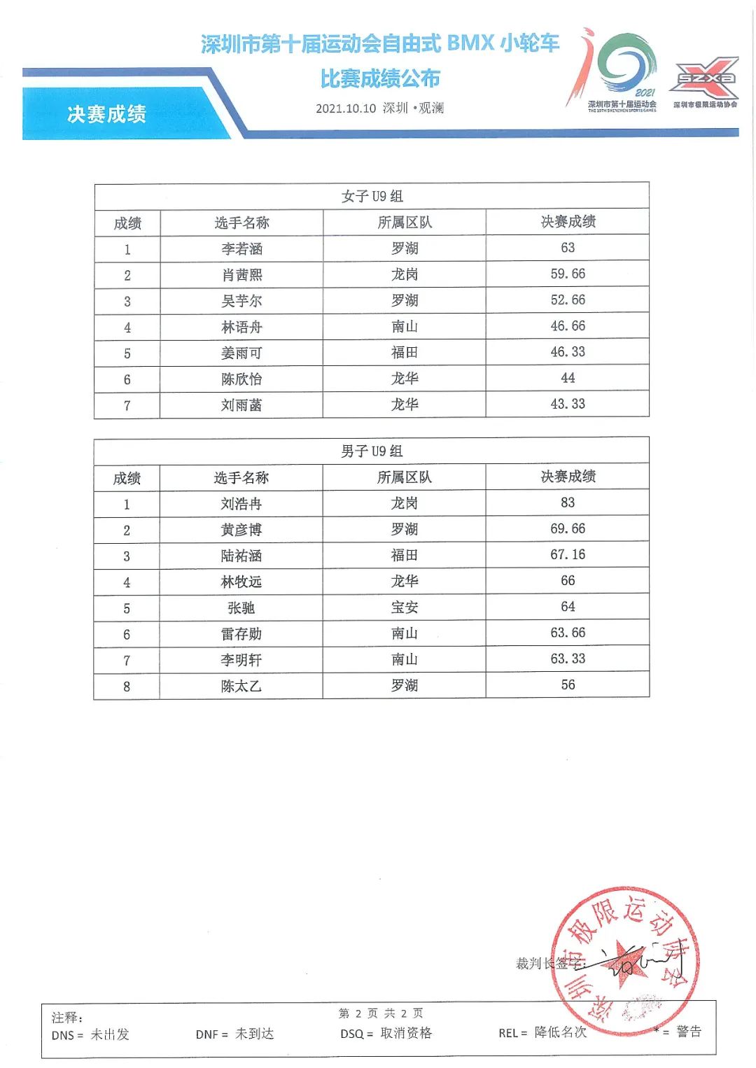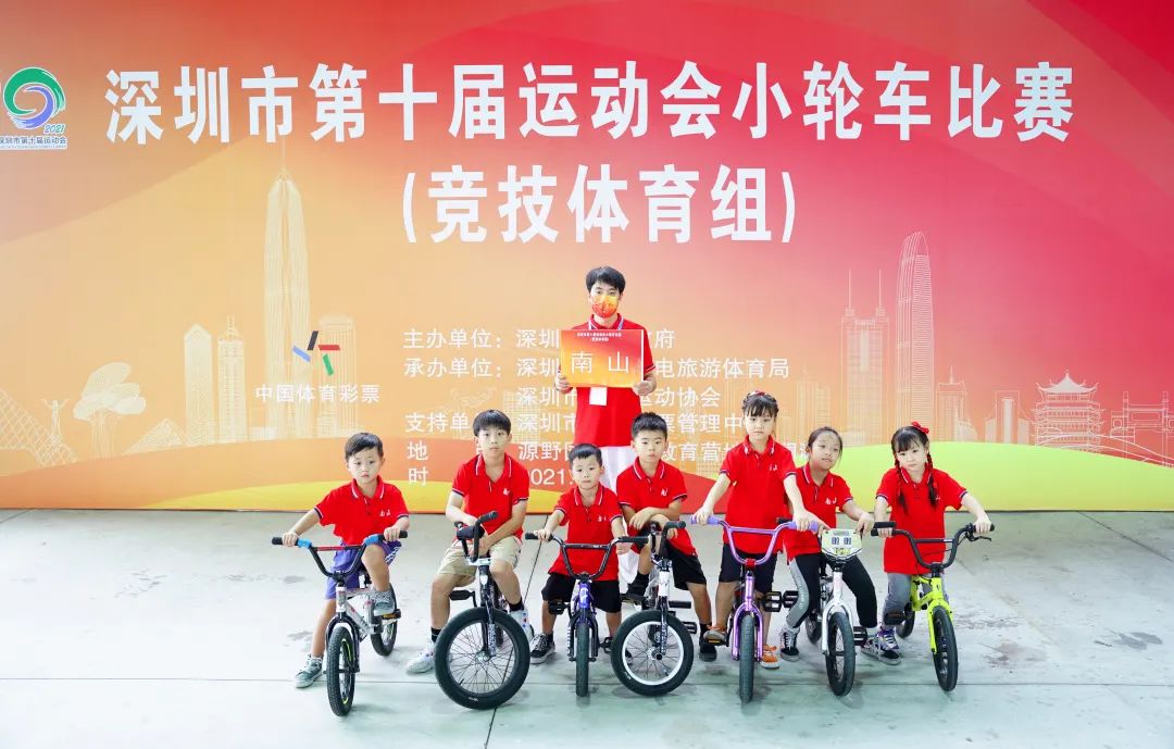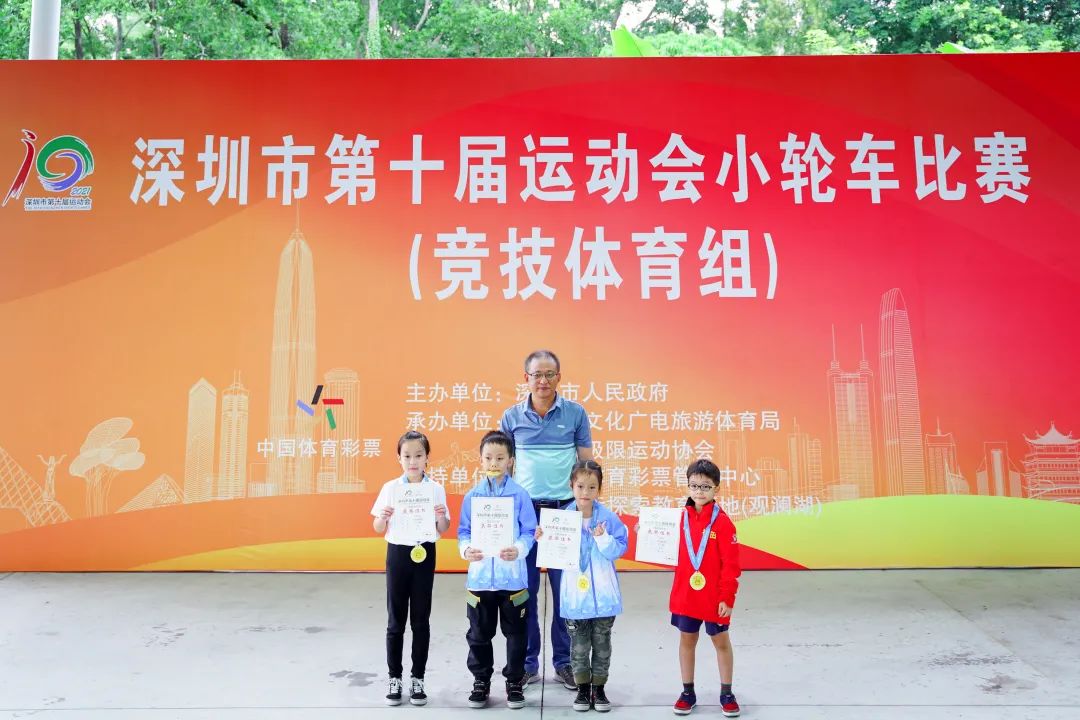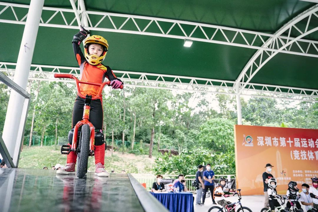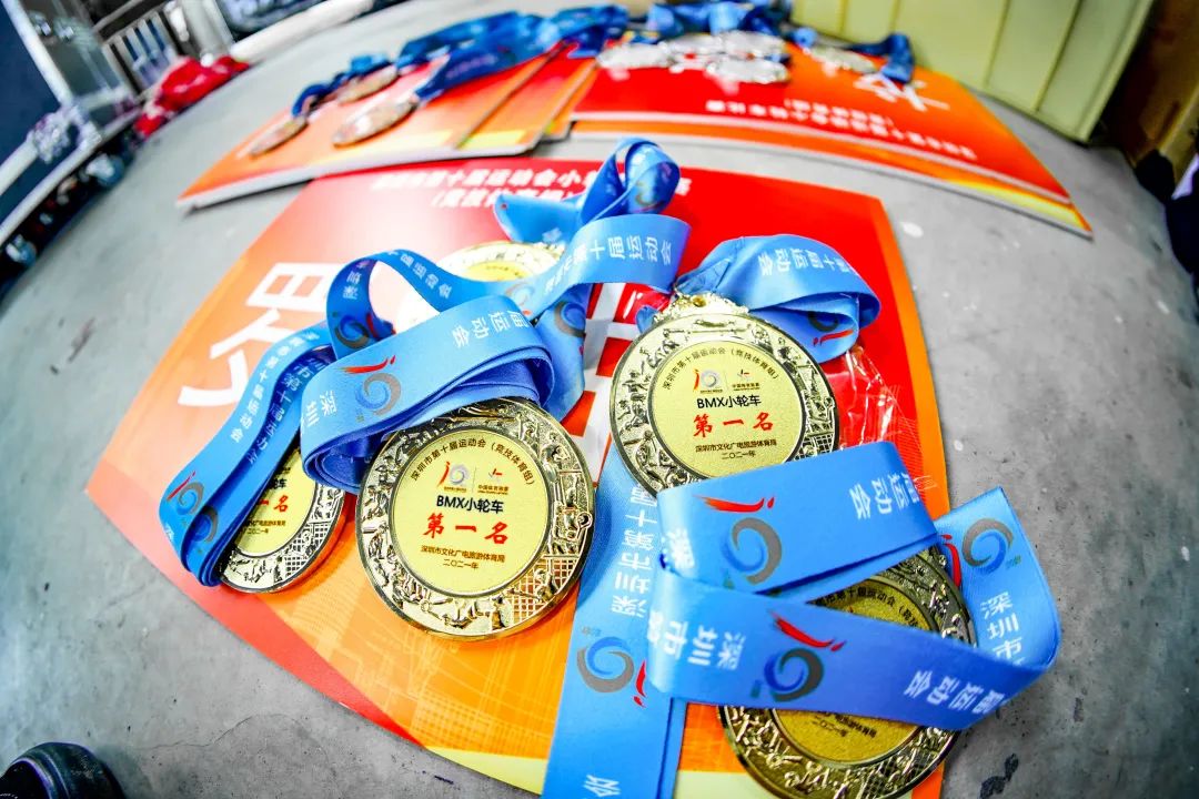 本届市运会福田、罗湖、南山、宝安、龙岗、龙华六个区代表队共计65名选手参加自由式BMX小轮车项目比赛,共产生了5枚金牌。其中福田区代表队郑淮天选手获得了男子U6组金牌,龙岗区代表队石欣仪选手获得了女子U6组金牌,龙岗区代表队刘浩冉选手获得了男子U9组金牌,罗湖区代表队李若涵选手获得了女子U9组金牌,龙华区代表队侯以凡选手获得了男子U13组金牌。