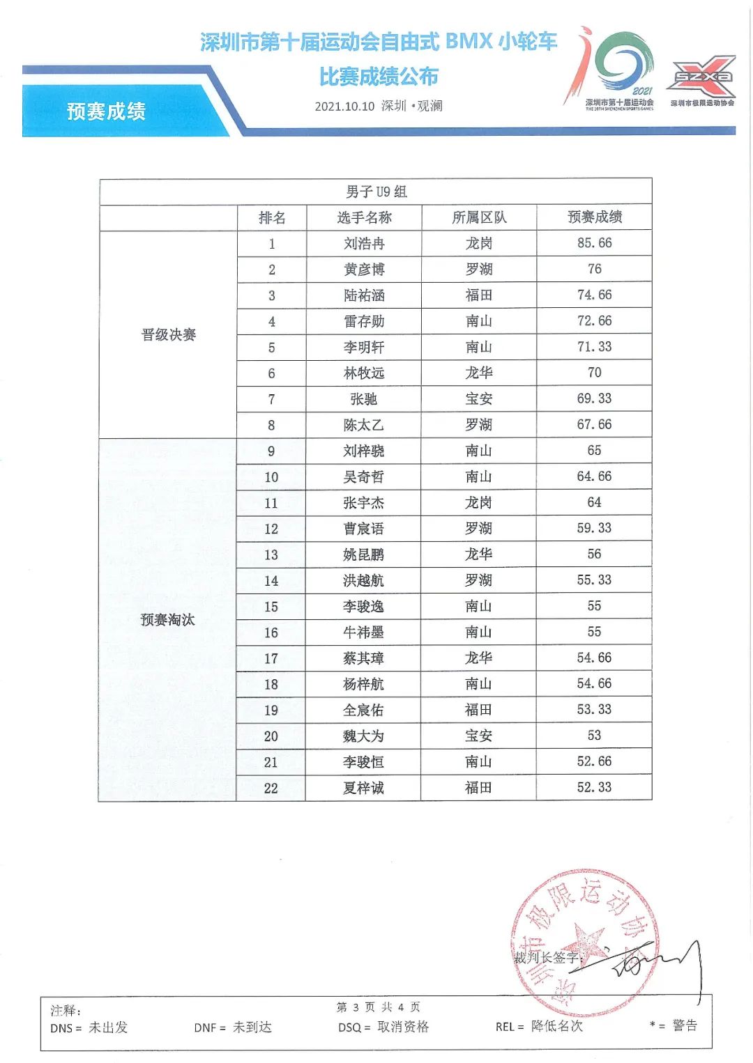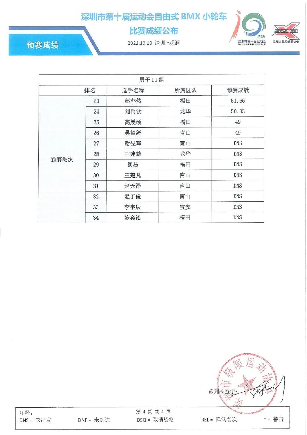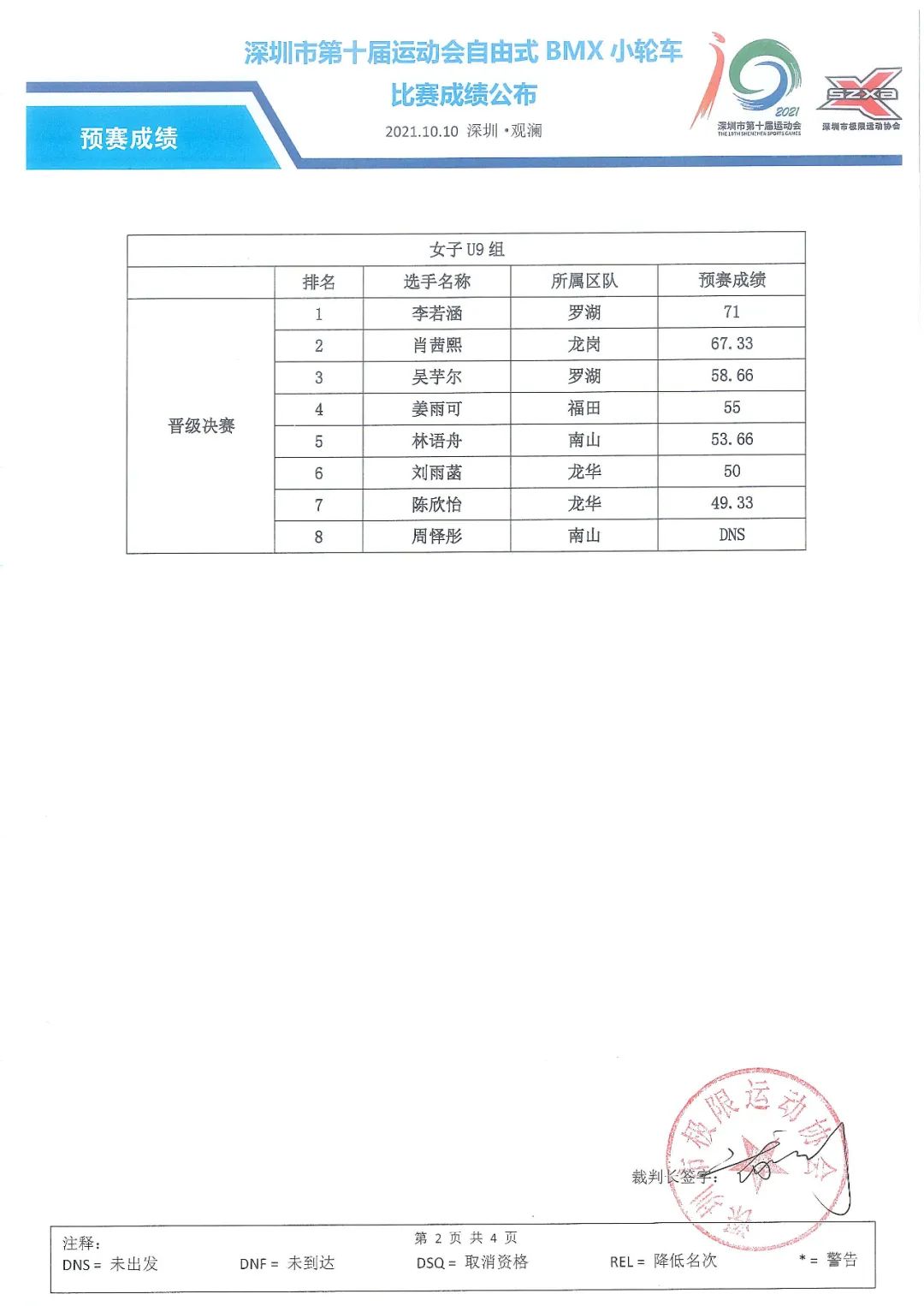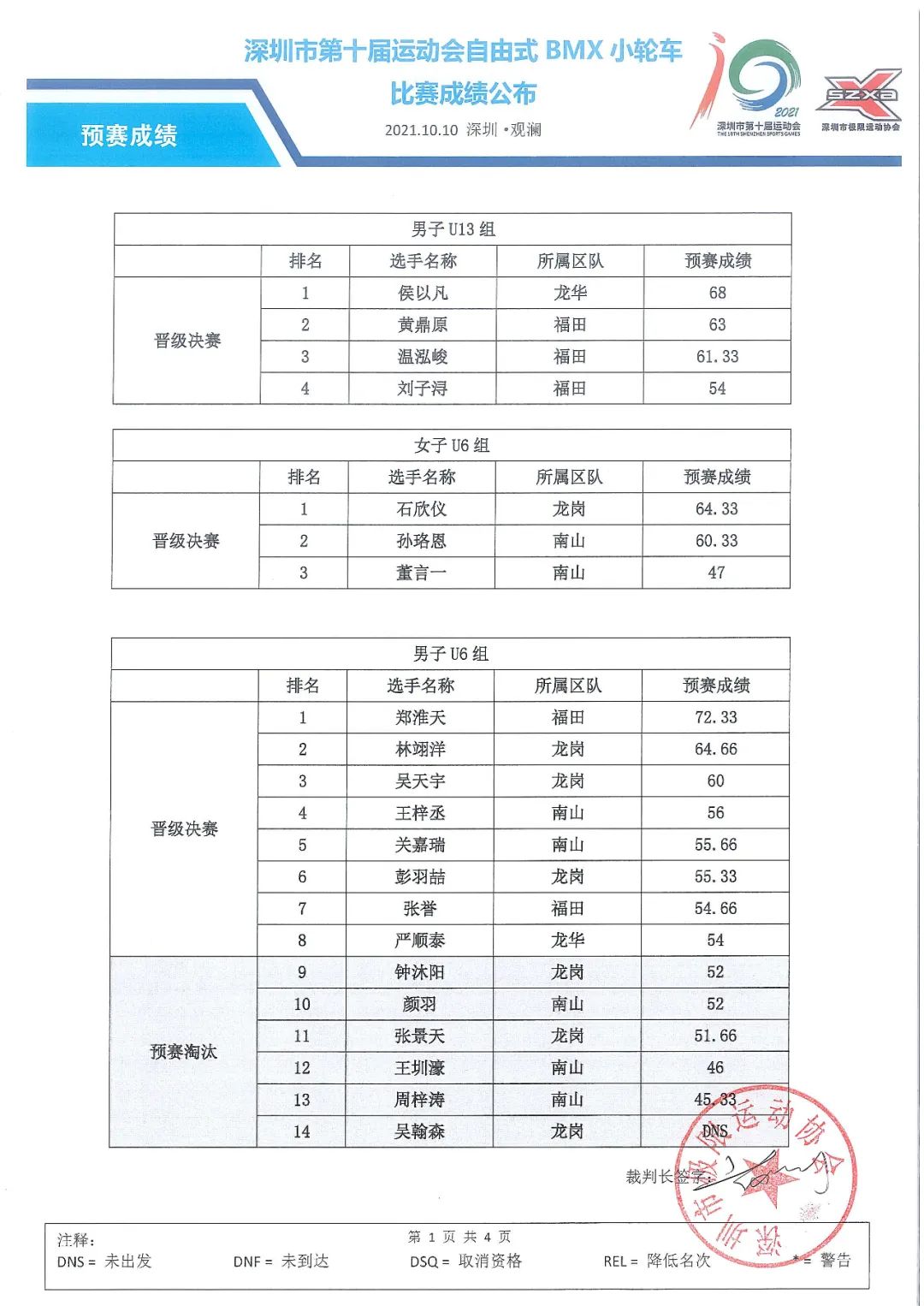 本届市运会福田、罗湖、南山、宝安、龙岗、龙华六个区代表队共计65名选手参加自由式BMX小轮车项目比赛,共产生了5枚金牌。其中福田区代表队郑淮天选手获得了男子U6组金牌,龙岗区代表队石欣仪选手获得了女子U6组金牌,龙岗区代表队刘浩冉选手获得了男子U9组金牌,罗湖区代表队李若涵选手获得了女子U9组金牌,龙华区代表队侯以凡选手获得了男子U13组金牌。